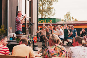Ons proeflokaal is ideaal voor bedrijfsuitjes, verjaardagen, vergaderingen en bruiloften. Vier binnen tussen de brouwketels of – bij mooi weer – buiten aan de Dokkumer Ee. Kies uit o.a. Muzikale Bierproeverij, Bieryoga, High Beer, Bier & BBQ of Bier & Pizza.