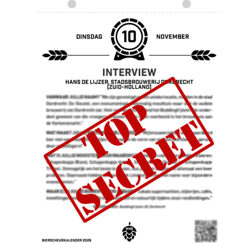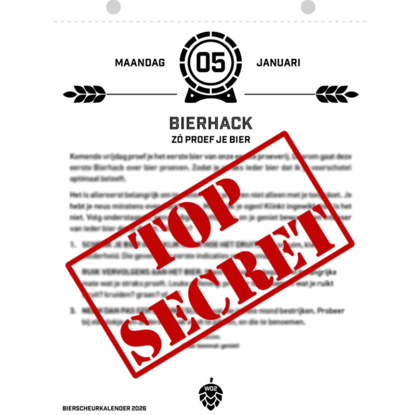 Deze unieke bier scheurkalender 2026 van Arjan Jonkers is een ware bierbeleving. De kalender zit boordevol bierkosrtingen, bierhacks, interviews, biervragen en nog veel meer. Het ideale cadeau voor de feestdagen om een bierliefhebber blij te maken. Met de kalender leer je de wereld van Nederlandse bieren nog beter kennen en kan je profiteren van diverse kortingen, onder andere bij Biervaneigenbodem.